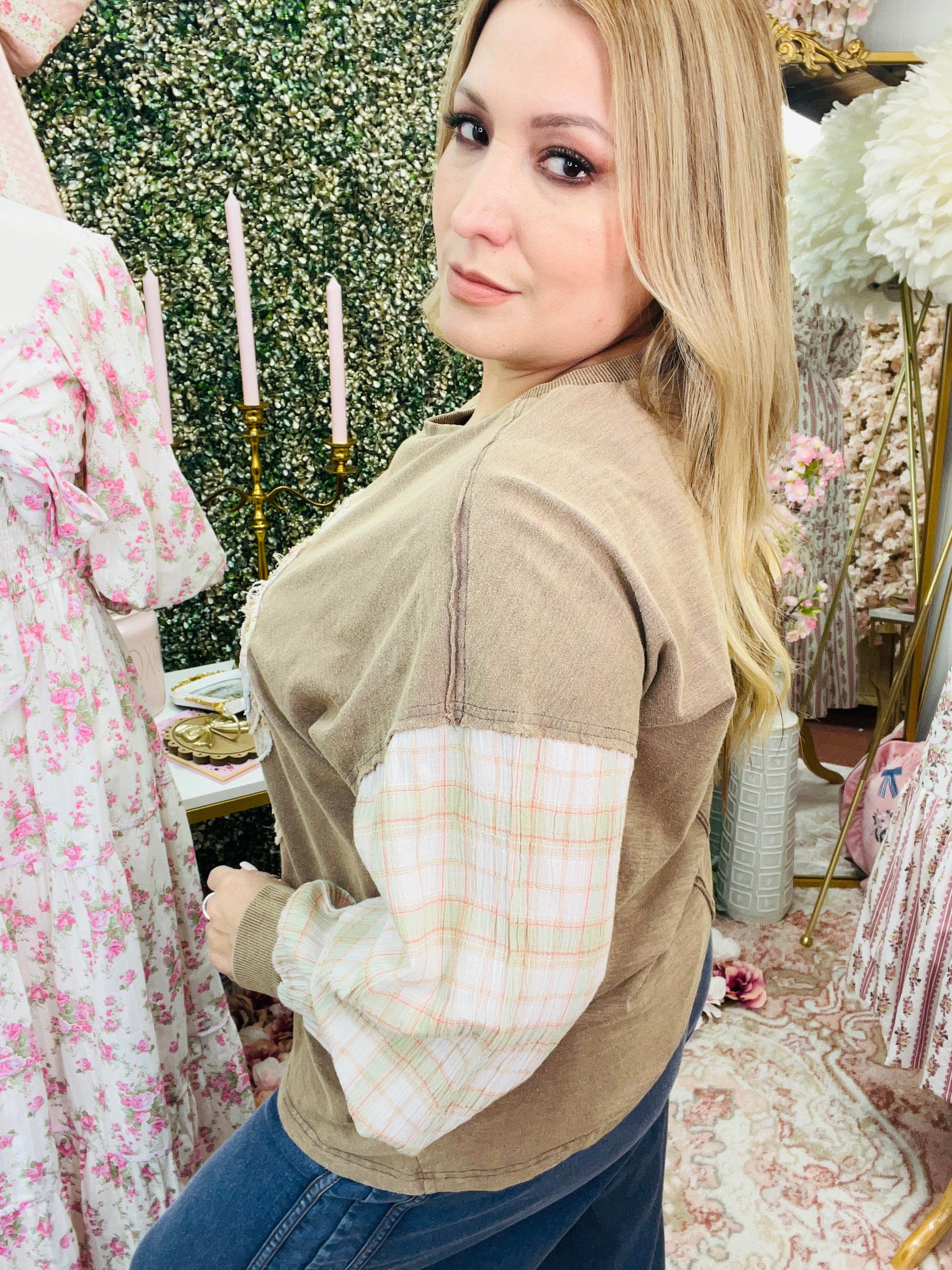 Embrace effortless style with this charming washed cotton top, featuring a striking flower patchwork design on the front. The relaxed silhouette showcases balloon sleeves with ribbed cuffs, a rounded neckline, and dropped shoulders for a contemporary, comfortable fit. Layered floral and plaid print detailing adds visual interest and vintage-inspired appeal. Perfect for casual days or dressed-up occasions, this versatile piece brings playful texture and warmth to any wardrobe.