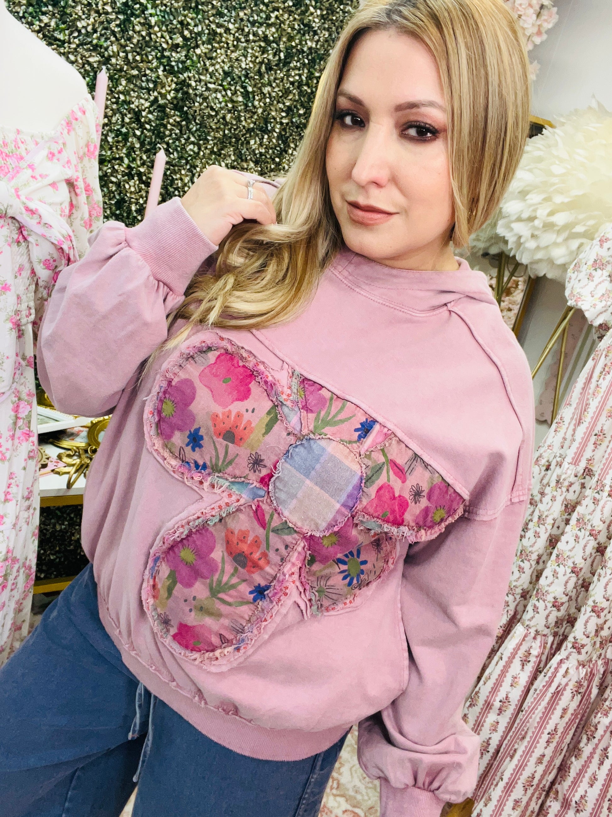 FLOWER PATCH WASHED TERRY PULLOVER HOODIE