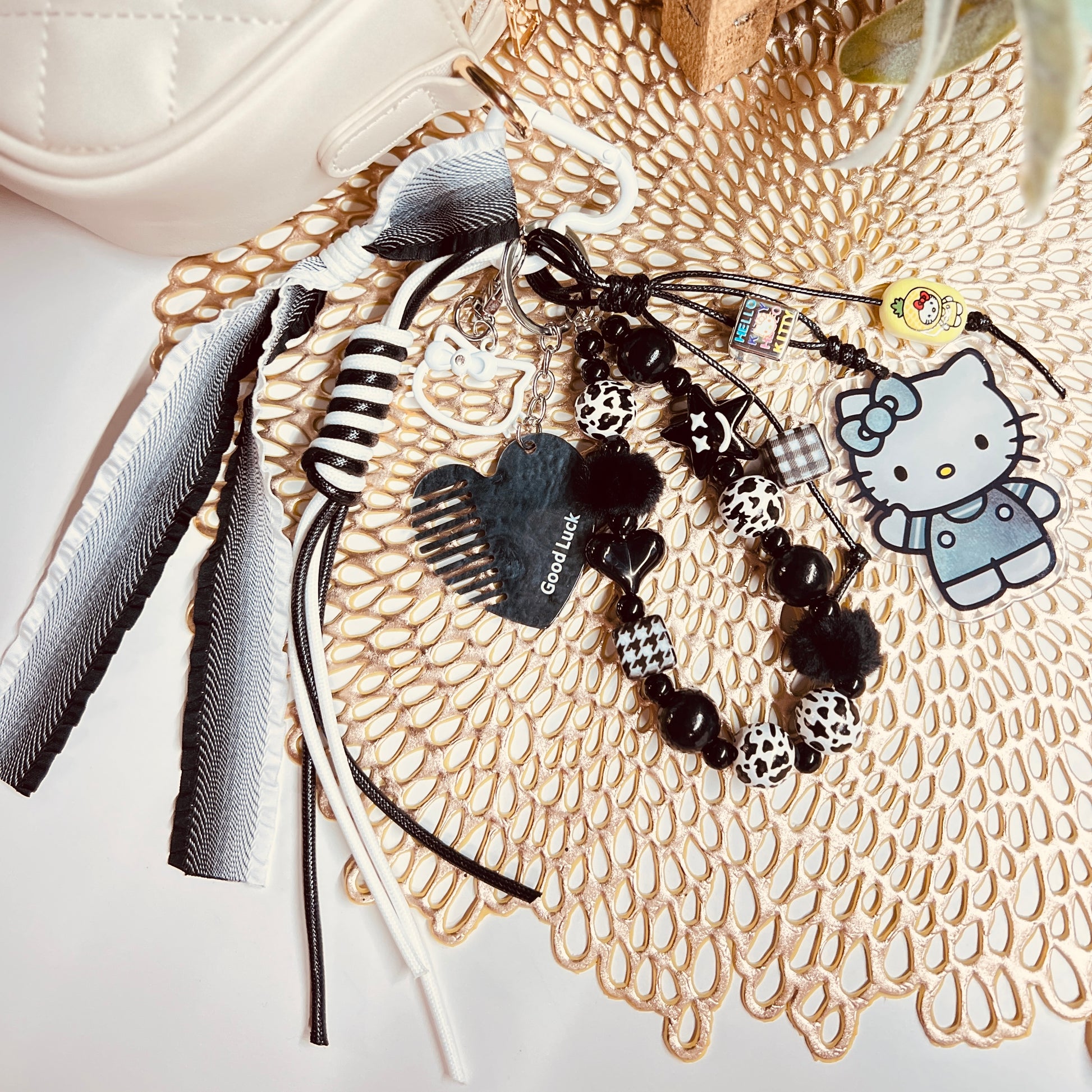 HANDMADE BAG CHARMS ~ KITTY/ HOUNDSTOOTH BEADS