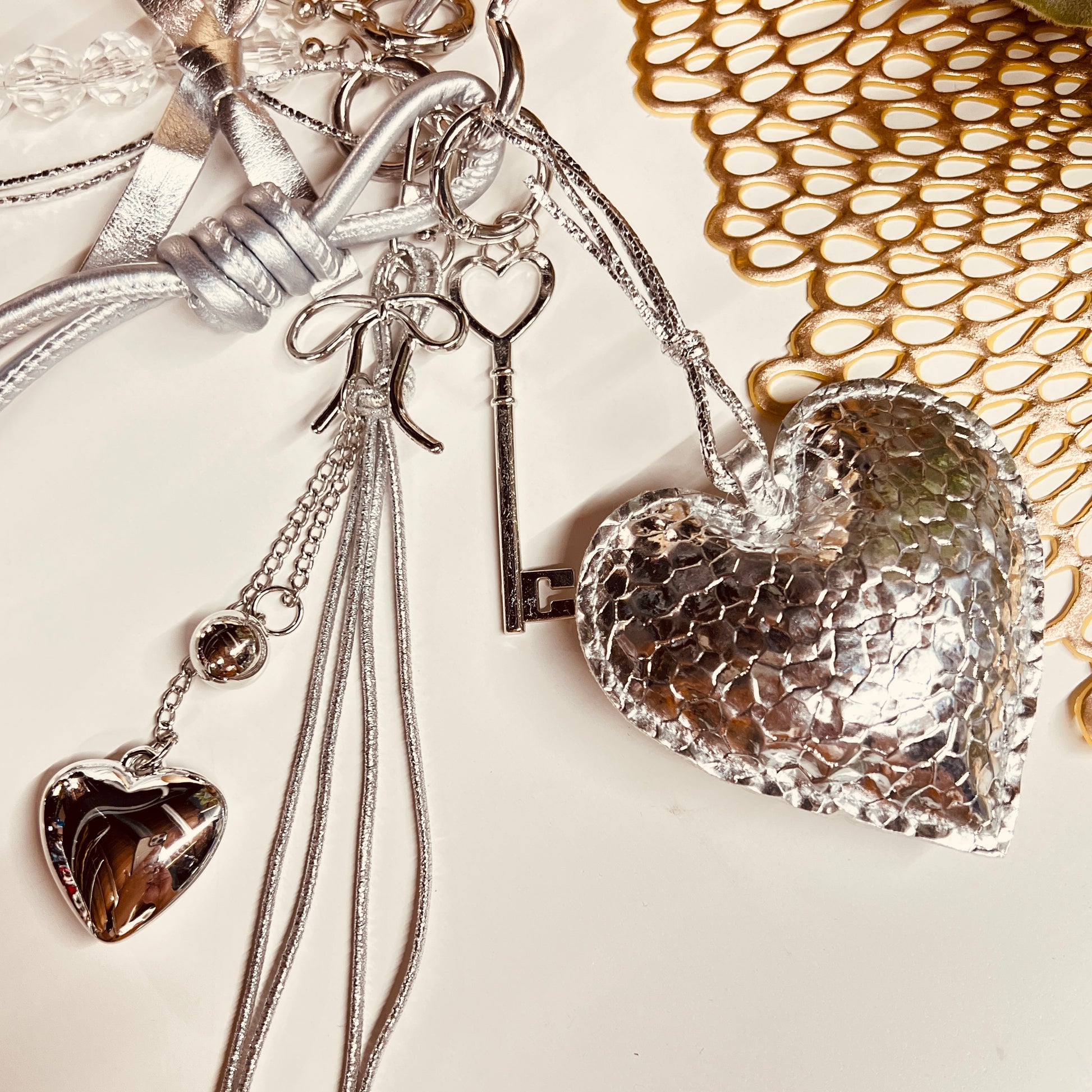 HANDMADE BAG CHARMS ~ SILVER FAUX LEATHER HEART ~