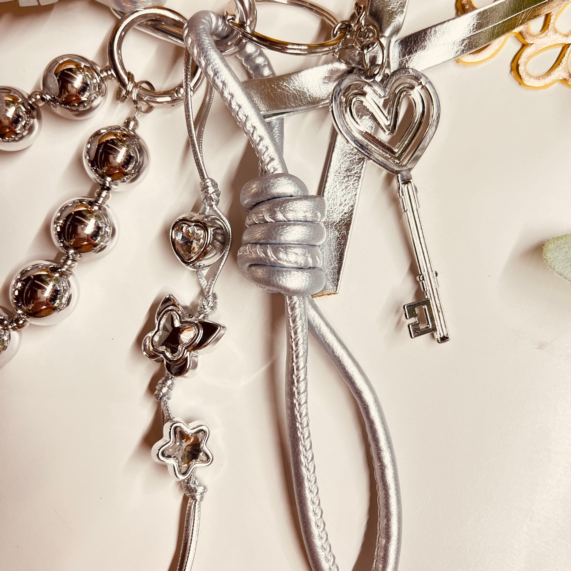 HANDMADE BAG CHARMS ~ SILVER HEART/SILVER BEADS CHAIN ~